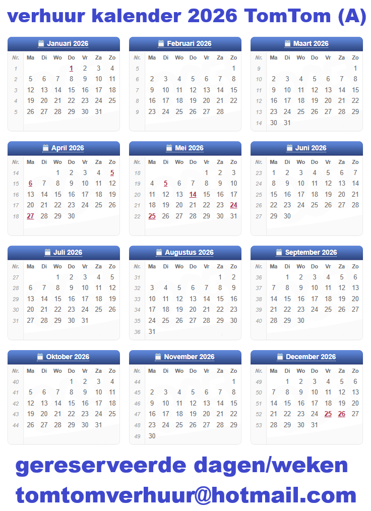 Deze TomTom (A) is gereserveerd op de volgende data in 2026 zie de foto boven.