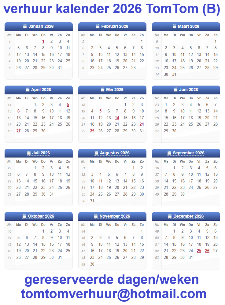 Deze TomTom (B) is gereserveerd op de volgende data in 2026 zie de foto boven.